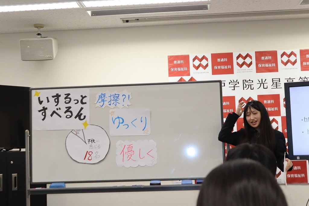 11月25日(火)3・4校時、福祉コース3年T組9名が日常の学習の成果を発表しました。