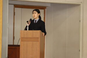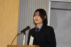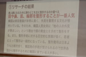 3年次の各コースから選ばれた発表者はInspire High(インターネットを通じて世界とつながる探究的な学びを手軽に教室で実践できるプログラム)や文献等からの研究結果を堂々と発表しました。聞き手の1・2年次生も記録用紙に記入しながら集中して聞いていました。