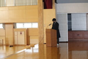 この発表会の目的は、「総合的な探究の時間」における活動を通して深めてきた学習成果を発表することで、生徒の表現力・プレゼンテーション能力の向上を図ることと、3年次生の発表を下級生が聞き、次年度の探究活動に取り組む態度や意識の啓発を図ることです。