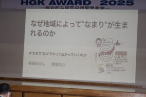 12月22日の5・6校時にHGK Award 2025~総合的な探究の時間発表会~が、本校体育館で行われました。HGKは八戸学院光星高等学校の頭文字、Awardは「賞」という意味があります。